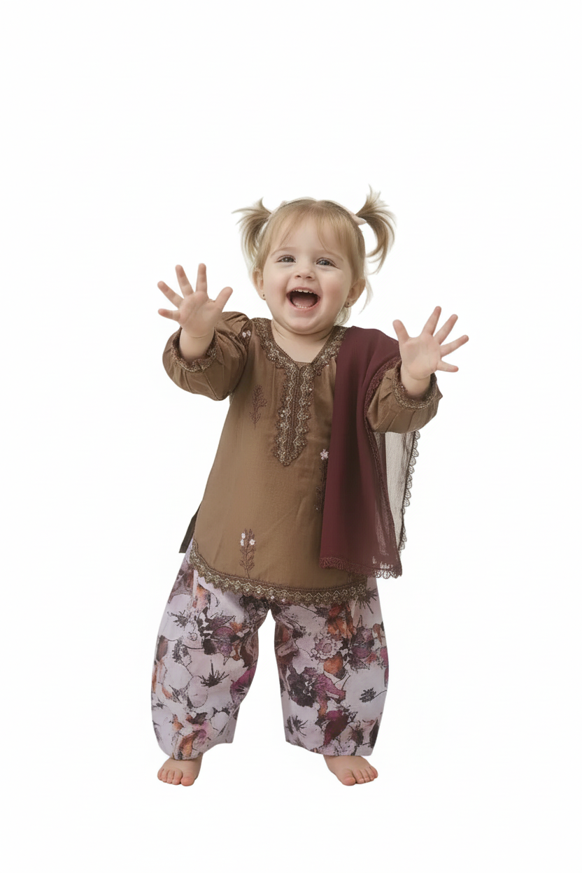 Brown puffed sleeved with farshi shalwar (0-3 months to 2-3 years) - is backordered and will ship as soon as it is back in stock.