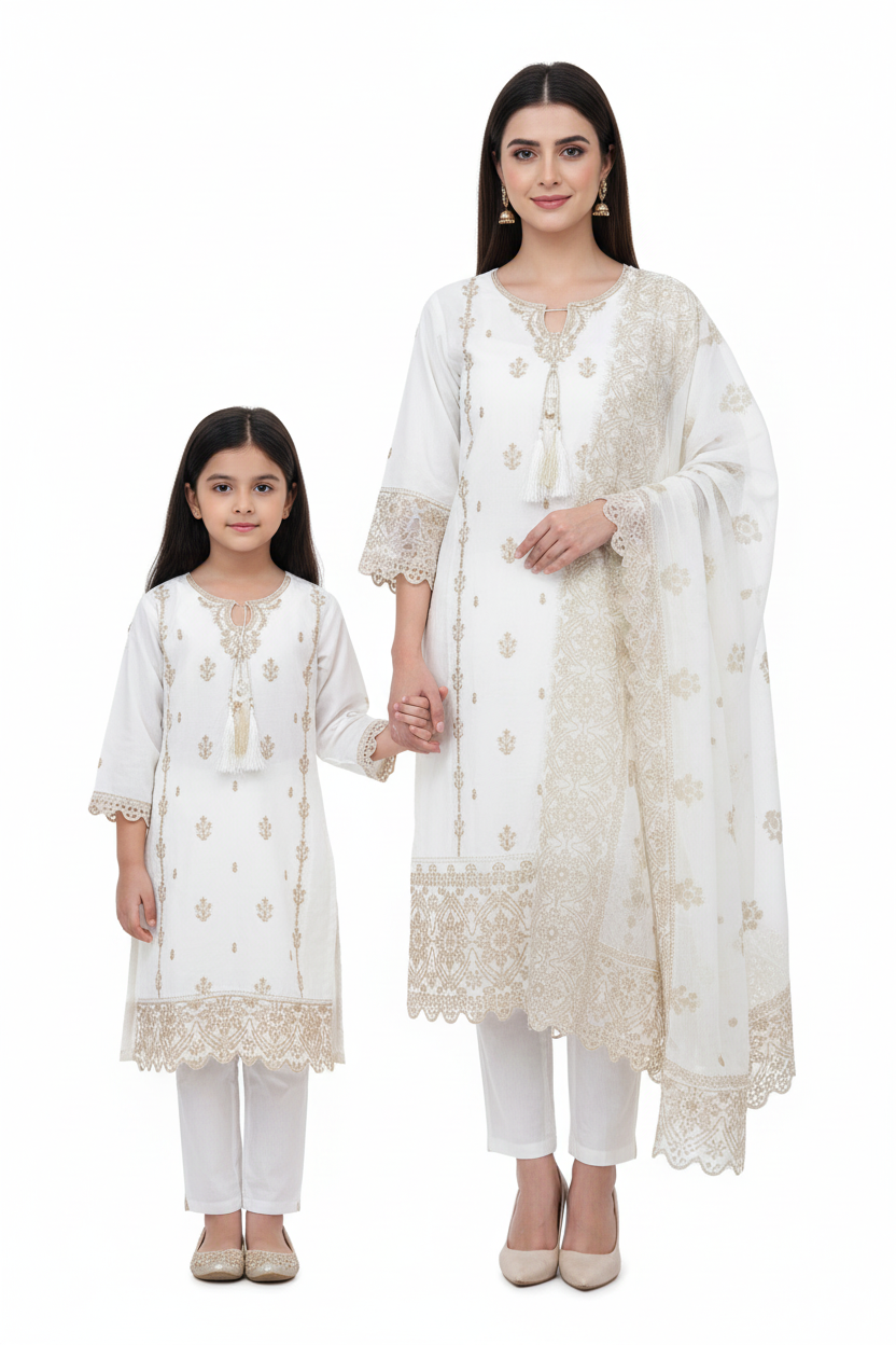 White Mother daughter cotton suit (2 years - Adult XL)