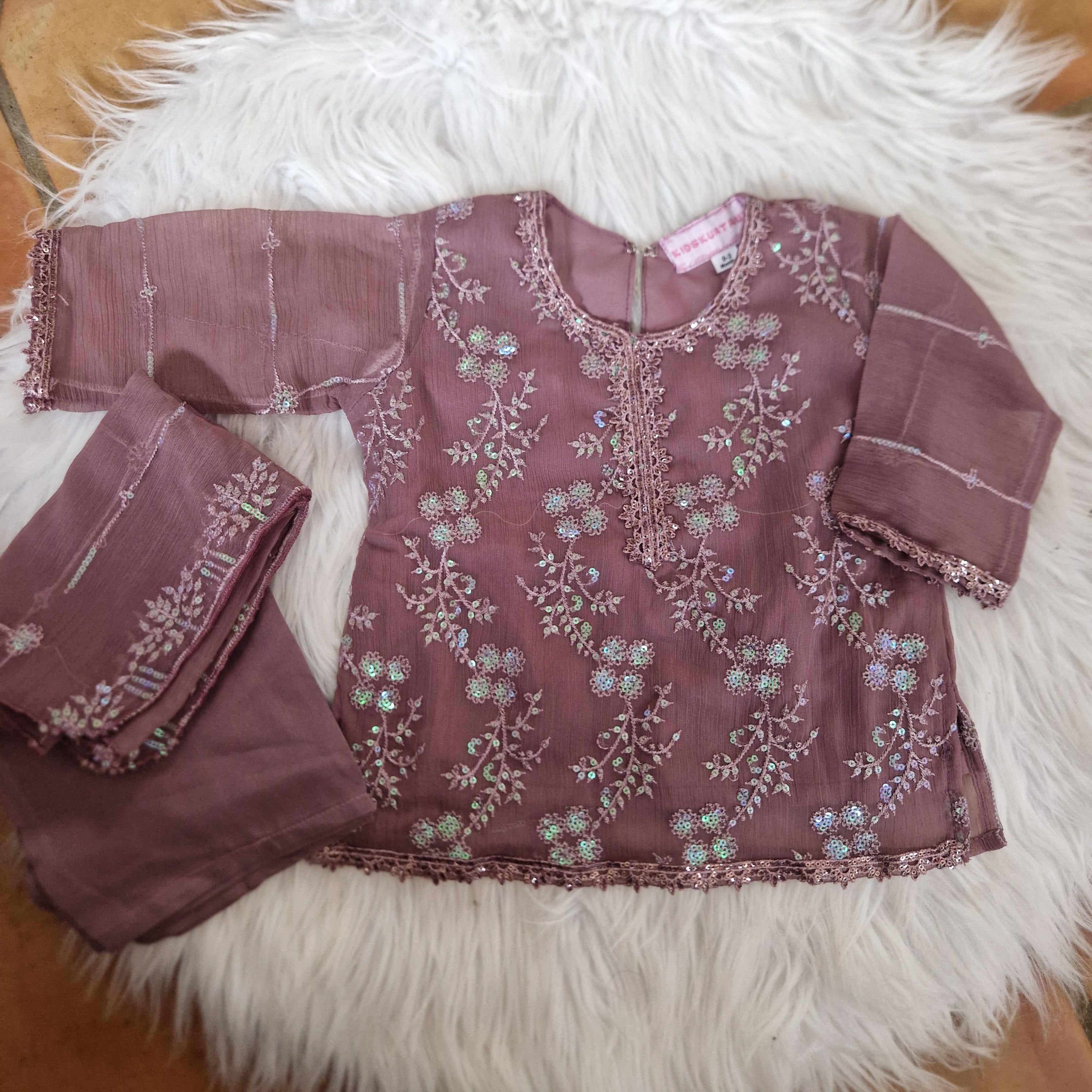 Sequinned chiffon with cotton silk trousers and chiffon dupatta