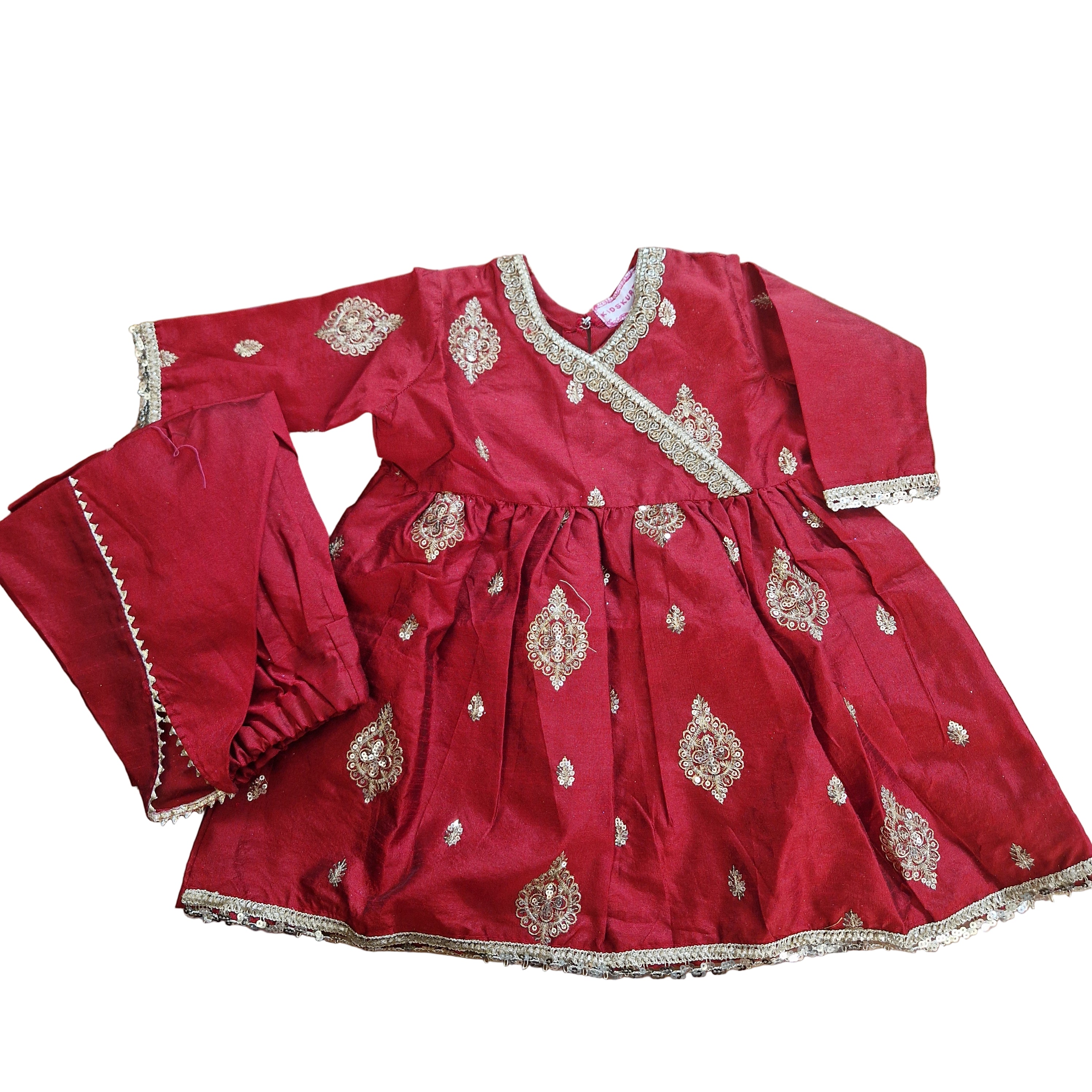 Red silk 2 piece with tulip bottoms 6-9 months