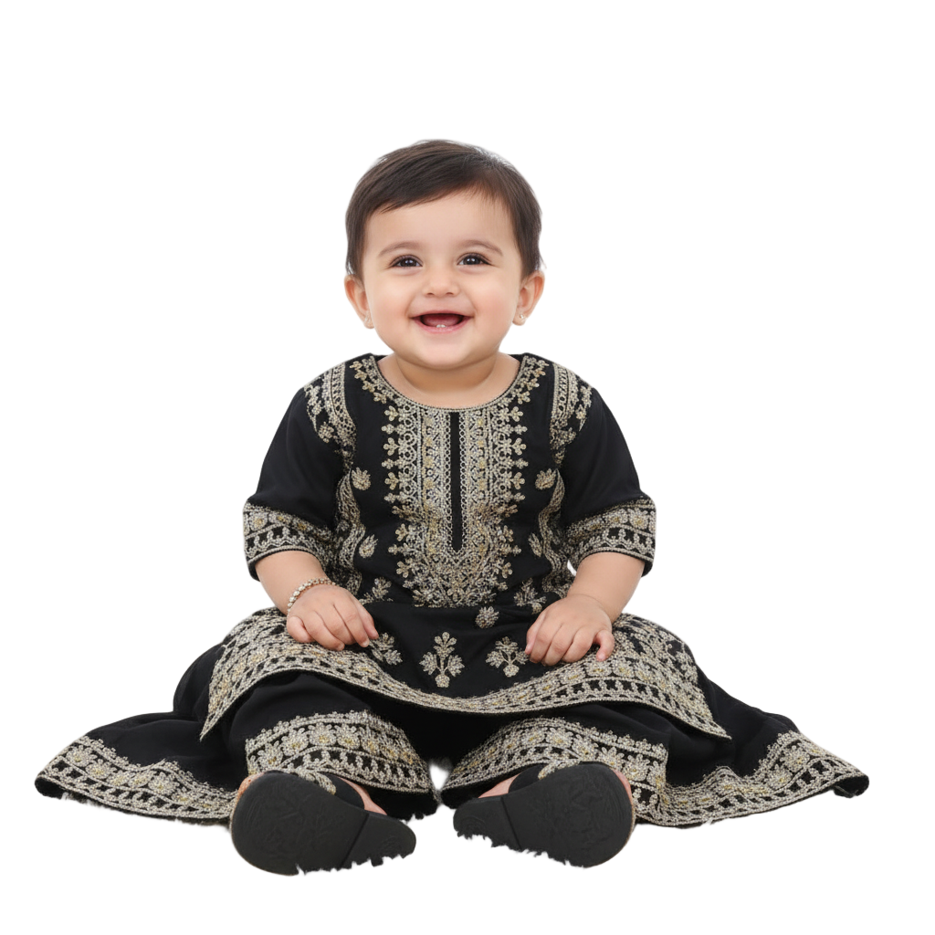 Black Lawn cotton with shalwar (newborn to 15 years)