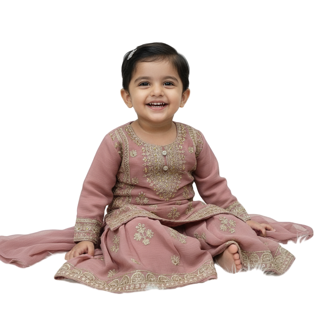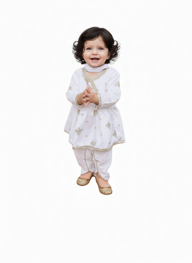 Gold with shalwar (0-3 months, 6-9, 9-12 months, 2-3 and 3-4 years)