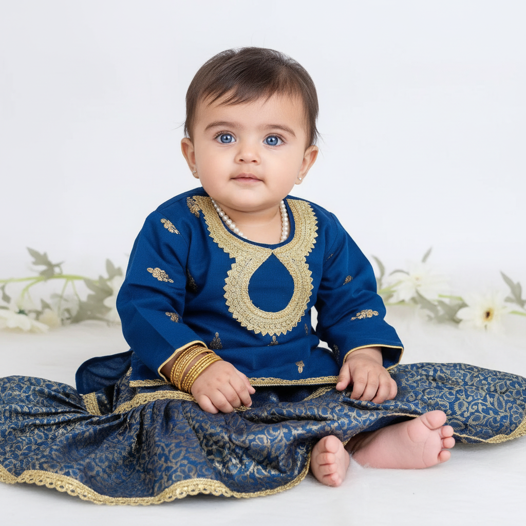 Navy with shalwar (0-3, 3-6, 6-9 months, and 2-3, 3-4 yrs)