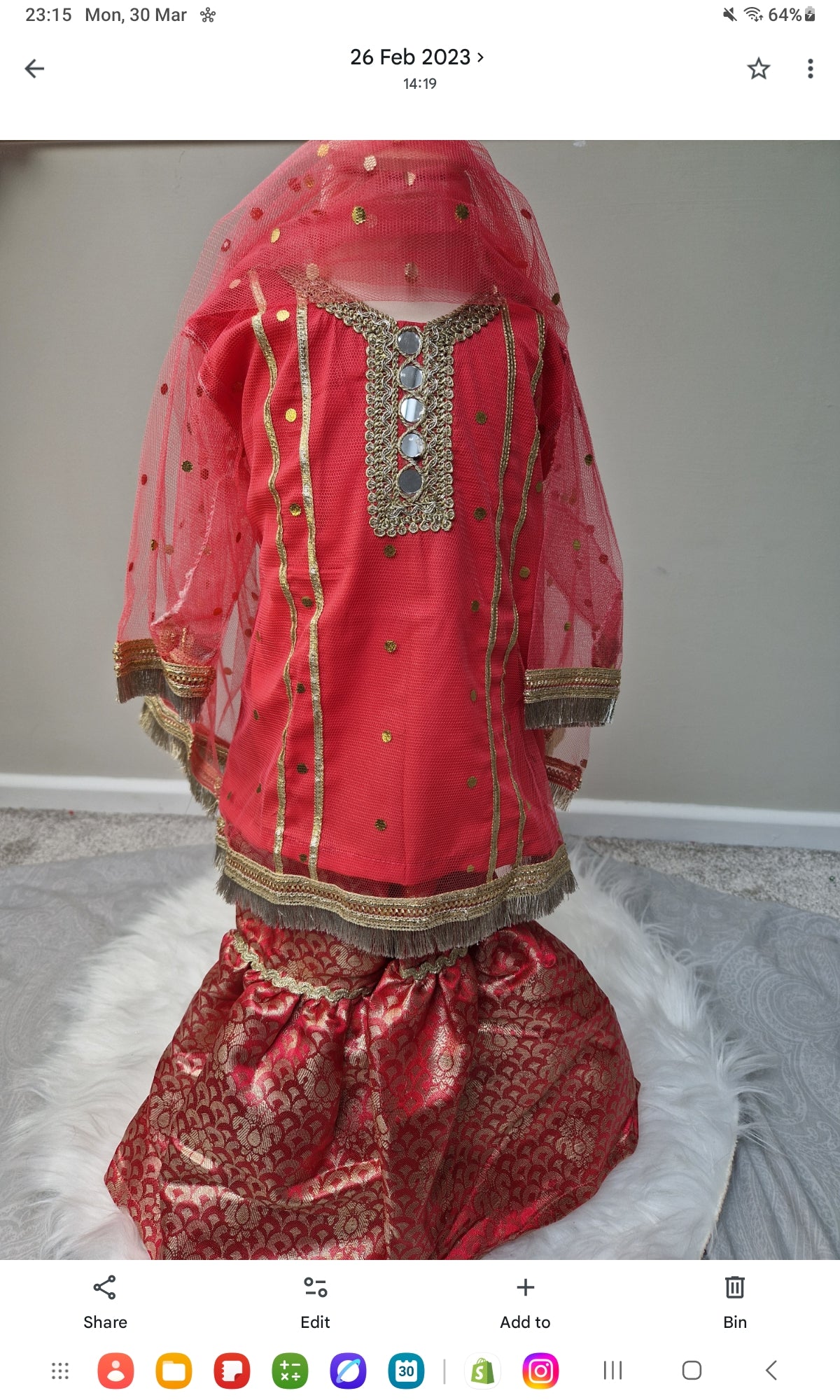 🌸 Baby girl 3 piece gharara from 0-3 months up to 6-7 years.